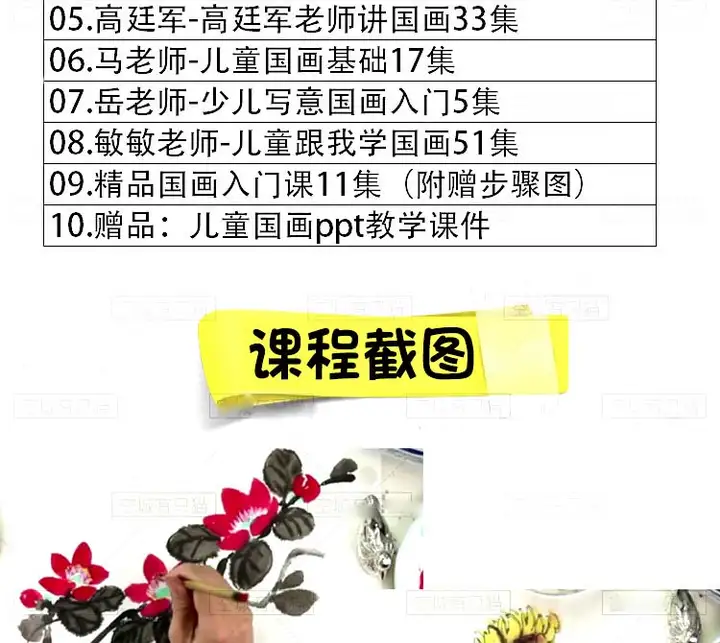 9套幼少儿童国画入门基础视频教程-创意美术课件ppt培训教案材电子版【电商热销651】